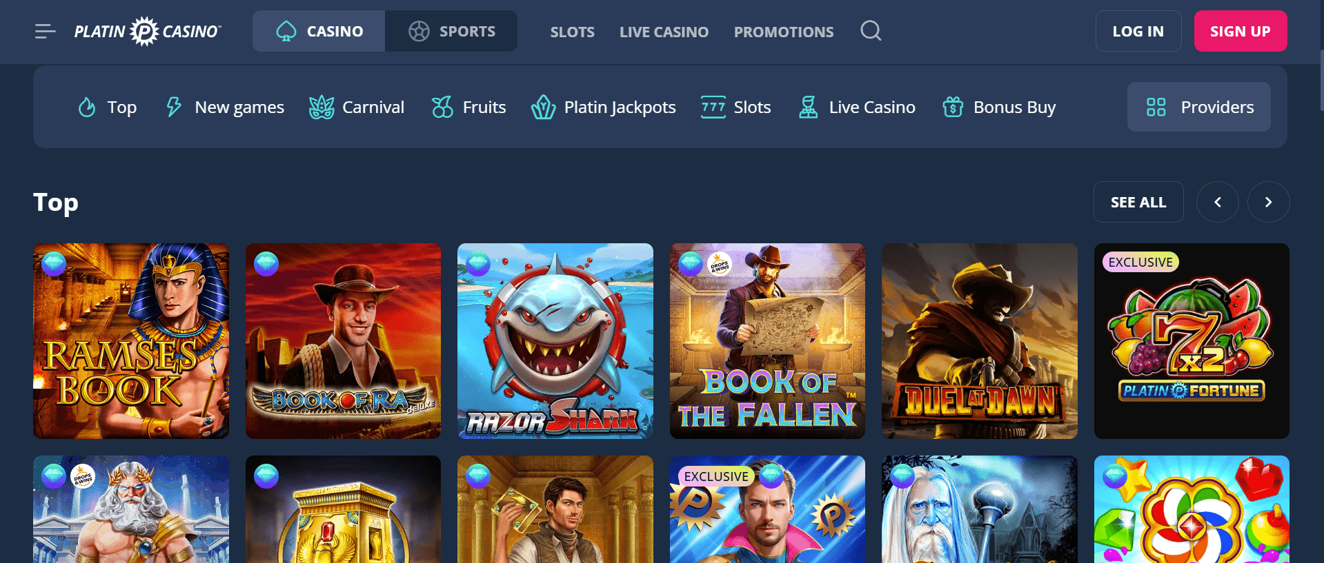 Playing casino games has never been as enjoyable as when gaming at Platin casino. This is accurate as there are over 5,000 games, and you can genuinely rely on the gambling platform since it has been around since 2012. The objective of the casino is to provide thrill and engagement to each of its players. Additionally, you'll observe that Platin casino collaborates with leading game studios and offers excellent live support. When it comes to games, you'll find numerous varieties of online slots, table games, live casino options, jackpots, and scratch cards.