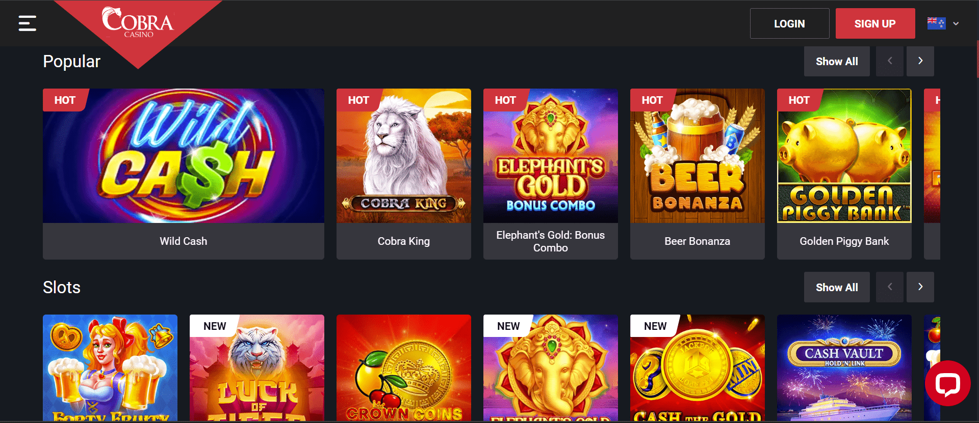 Das Cobra Casino wurde 2020 eröffnet und präsentiert das ungewöhnliche Thema der mächtigen Königskobra. Die Muttergesellschaft Dama N.V. ist ein bekannter Name in der irischen Online-Casino-Szene, und Cobra Casino ist eine weitere Marke, die unseren Spielern aus Irland erstklassige Unterhaltung bietet. Besonders gut gefallen uns die umfangreiche Casino-Spiele-Lobby und die Aktionsangebote.