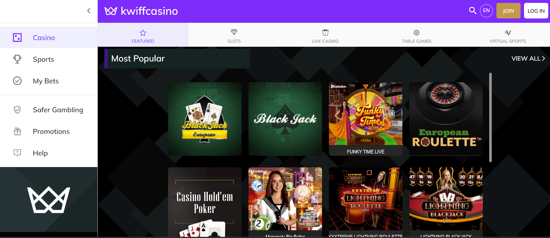 Kwiff Casino on nettikasino ja urheiluvedonlyöntisivusto, joka kutsuu pelaajia nauttimaan laajasta pelivalikoimasta. Kasino-osiosta löydät uusimmat videopelikoneet ja pöytäpelit, tai pelaajat voivat suunnata livekasinolle, jossa he voivat tavata oikeita jakajia. Kasinolla pelaajat voivat valita eri kielivaihtoehdoista, ja kasinoa tuetaan täysin uusimmilla verkko- ja mobiilialustoilla. Mielenrauhan takaamiseksi kasinolla on UK Gambling Commissionin täysi lisenssi ja sääntely.